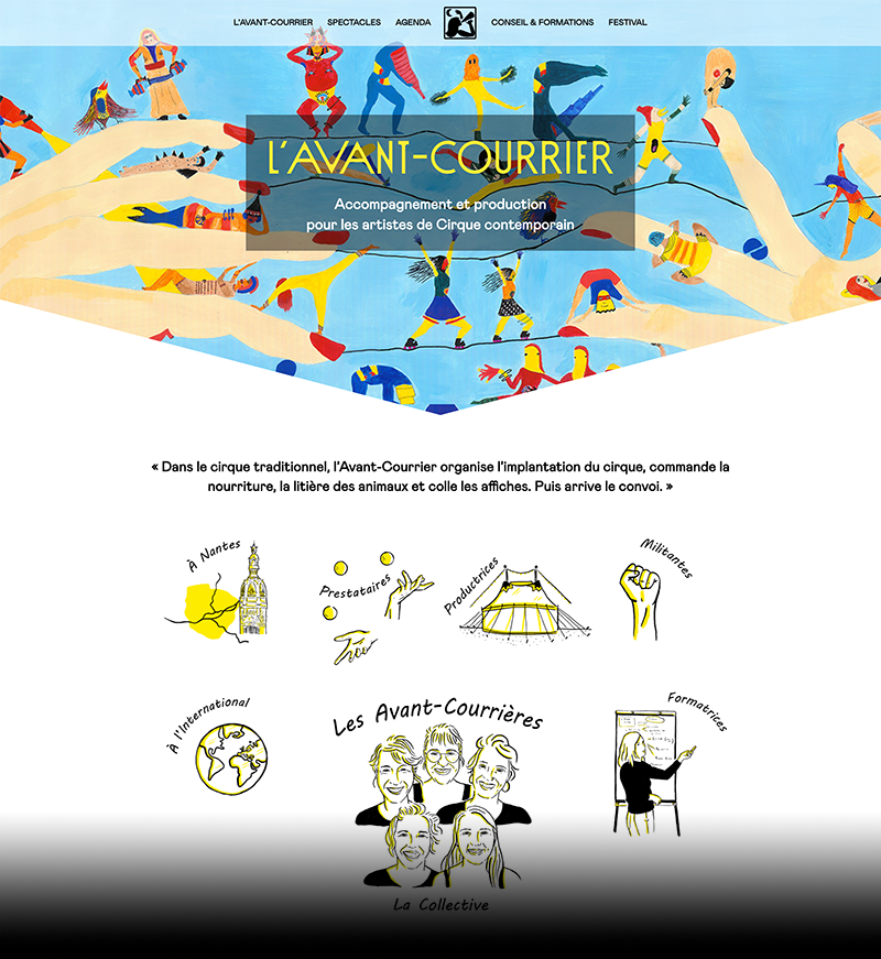 « Dans le cirque traditionnel, l’Avant-Courrier organise l’implantation du cirque, commande la nourriture, la litière des animaux et colle les affiches. Puis arrive le convoi. »