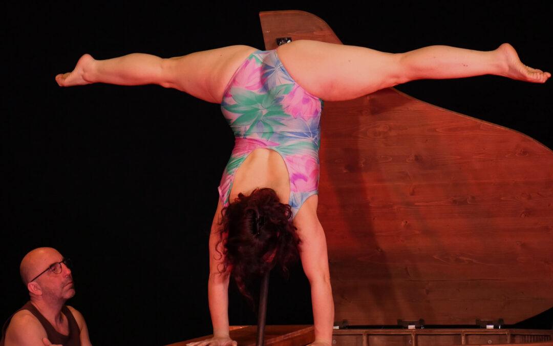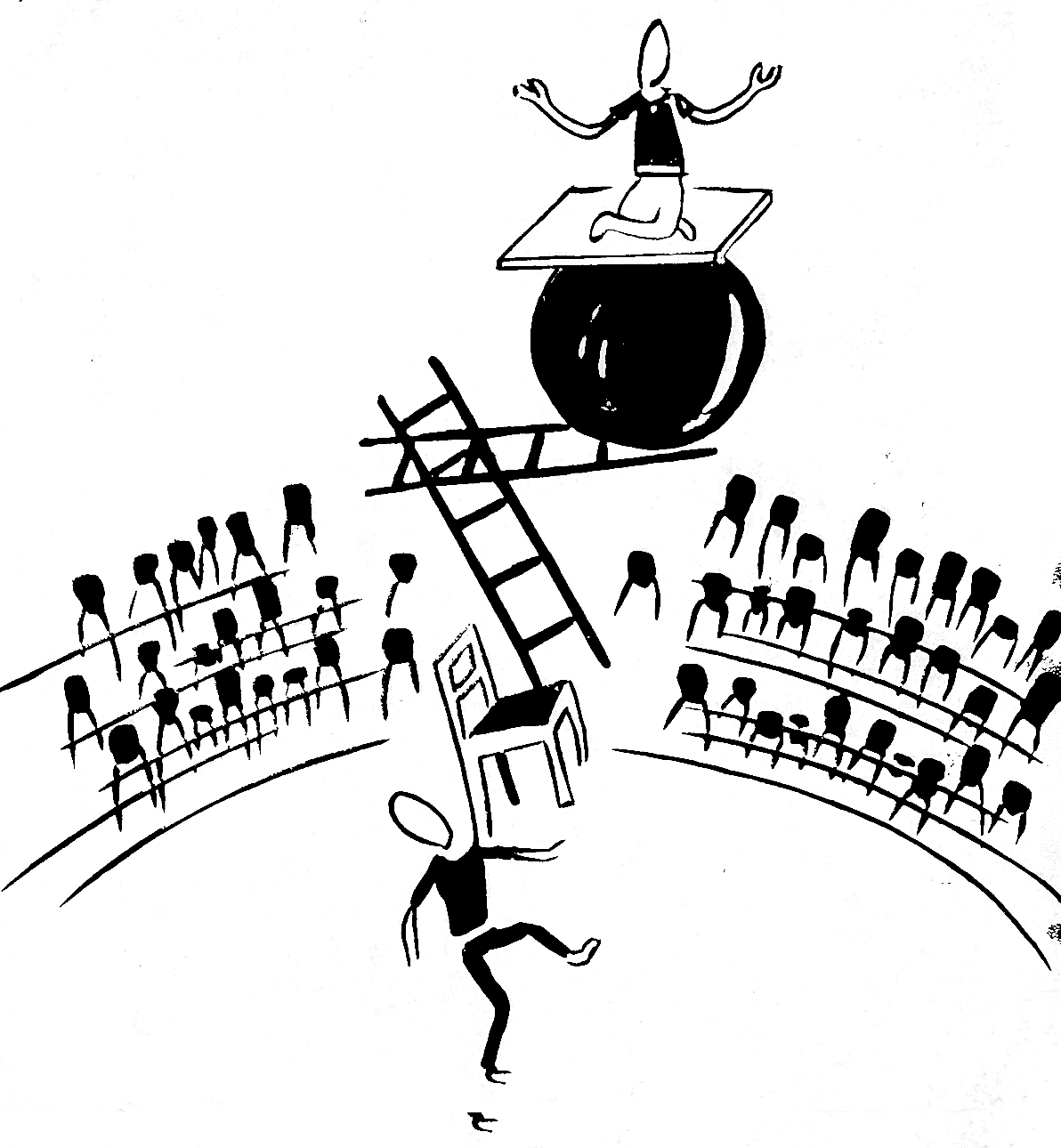 Pourtant, de notre point de vue d’acrobate, il s’agit plutôt de gérer des déséquilibres, ajuster en permanence les forces qui nous traversent, se faire diplomate pour négocier durement avec la gravité, avec notre partenaire ou avec le public. Plus qu’un objectif à atteindre, l’équilibre est un travail coopératif entre différents organes sensoriels (la vue, le toucher, l’ouïe), et son partenaire (qu’il soit humain ou agrès).